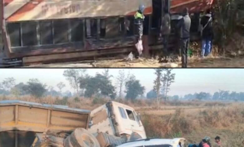 पहली घटना जशपुर जिले के फरसाबहार थाना क्षेत्र अंतर्गत सिकरीमा के पास की है। माटीपहाड़छर्रा से जशपुर की ओर जा रही बालाजी ट्रेवल्स की यात्री बस अचानक सड़क पर आए एक कुत्ते को बचाने के प्रयास में अनियंत्रित होकर पलट गई। बस में बड़ी संख्या में यात्री सवार थे। दुर्घटना के बाद मौके पर अफरा-तफरी मच गई। सूचना मिलते ही स्थानीय लोग मौके पर पहुंचे और घायलों को एंबुलेंस व निजी वाहनों की मदद से नजदीकी स्वास्थ्य केंद्र पहुंचाया गया। समाचार लिखे जाने तक घायलों की सटीक संख्या की आधिकारिक पुष्टि नहीं हो सकी है।