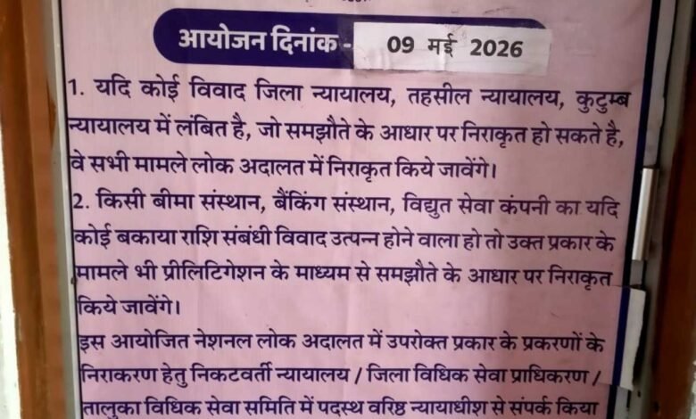 लंबे समय से लोक अदालत का इंतजार कर रहे लोगों के लिए राहत भरी खबर है। व्यवहार न्यायालय तिल्दा नेवरा में शनिवार, 09 मई 2026 को राष्ट्रीय लोक अदालत का आयोजन किया जाएगा। इस विशेष आयोजन में आपसी सुलह-समझौते के आधार पर लंबित मामलों का त्वरित निपटारा किया जाएगा।